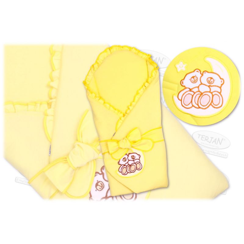 Rożek wykonany jest w 100% z mięciutkiej bawełny typu Jersey.Zapinany jest na rzep, posiada również wiązanie.Rożek usztywniony jest atestowaną pianką, którą można wyjmowaćdo prania. Ozdobiony jest śliczną haftowaną aplikacją oraz falbanką.
