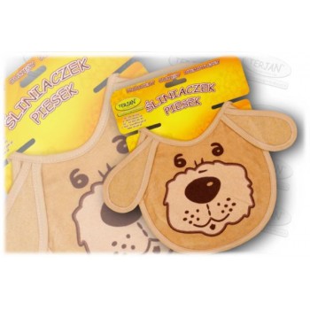 Śliniak wykonany jest z delikatnej frotki. Wewnątrz obszyty jest delikatną, atestowaną ceratką. Na śliniaczku znajduje się drukw postaci mordki pieska oraz doszyte uszka.Cały śliniaczek starannie wykończony jest lamówką.